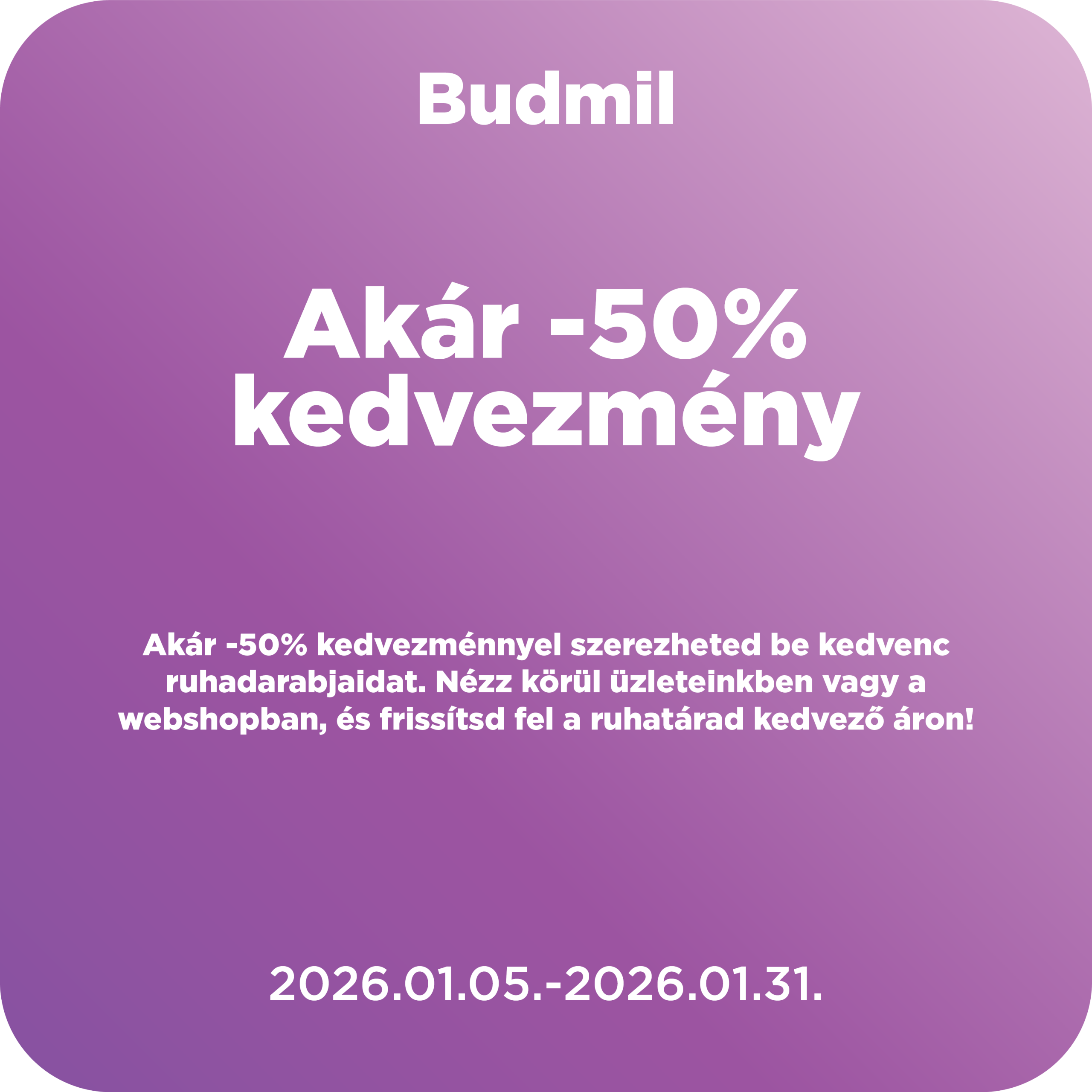 Az akcióban résztvevő üzletek ajánlatairól, érvényességéről és a kedvezmények feltételeiről érdeklődj üzletekben.